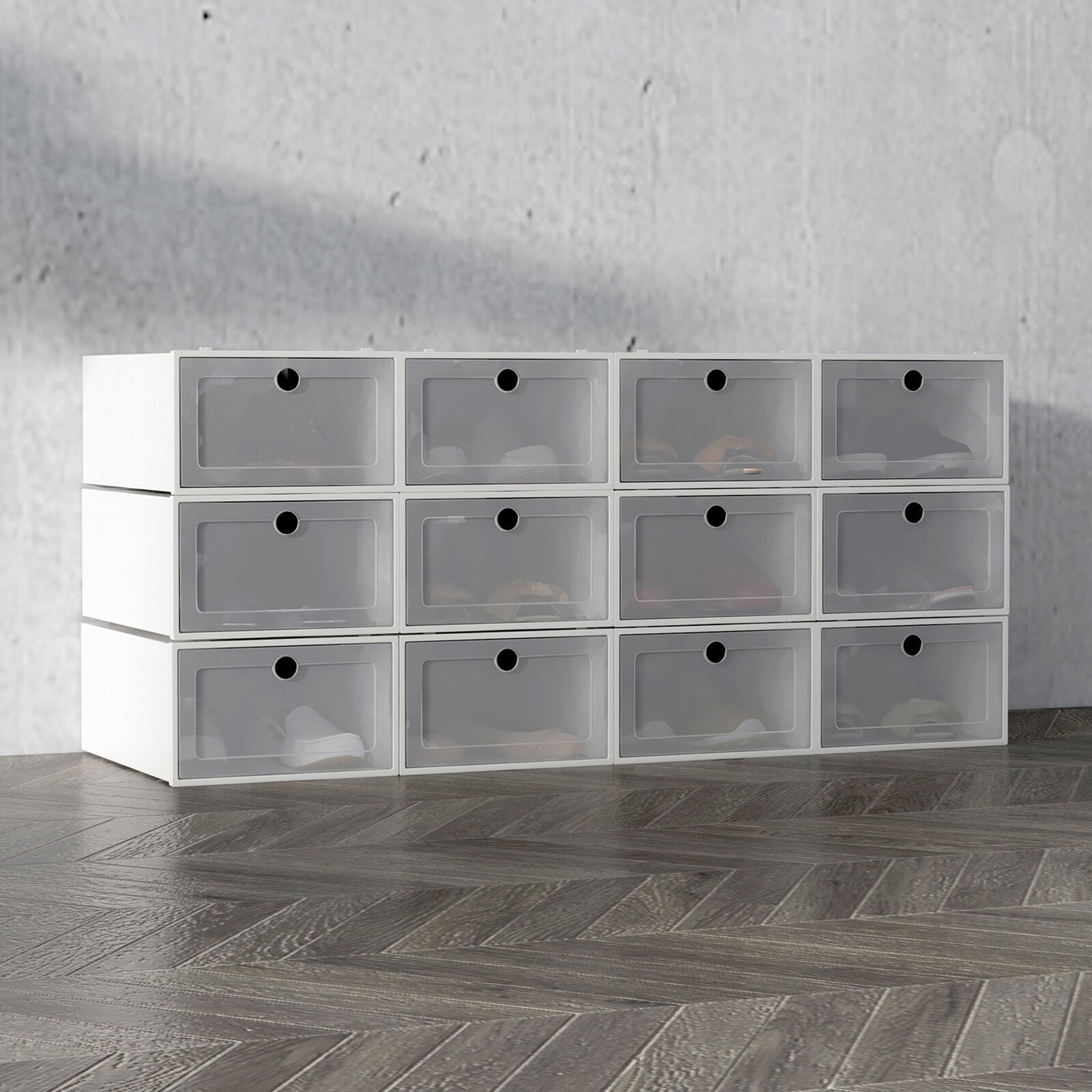 - 1 xCasa Decor 12 Piece Stackable Shoe Box Storage System