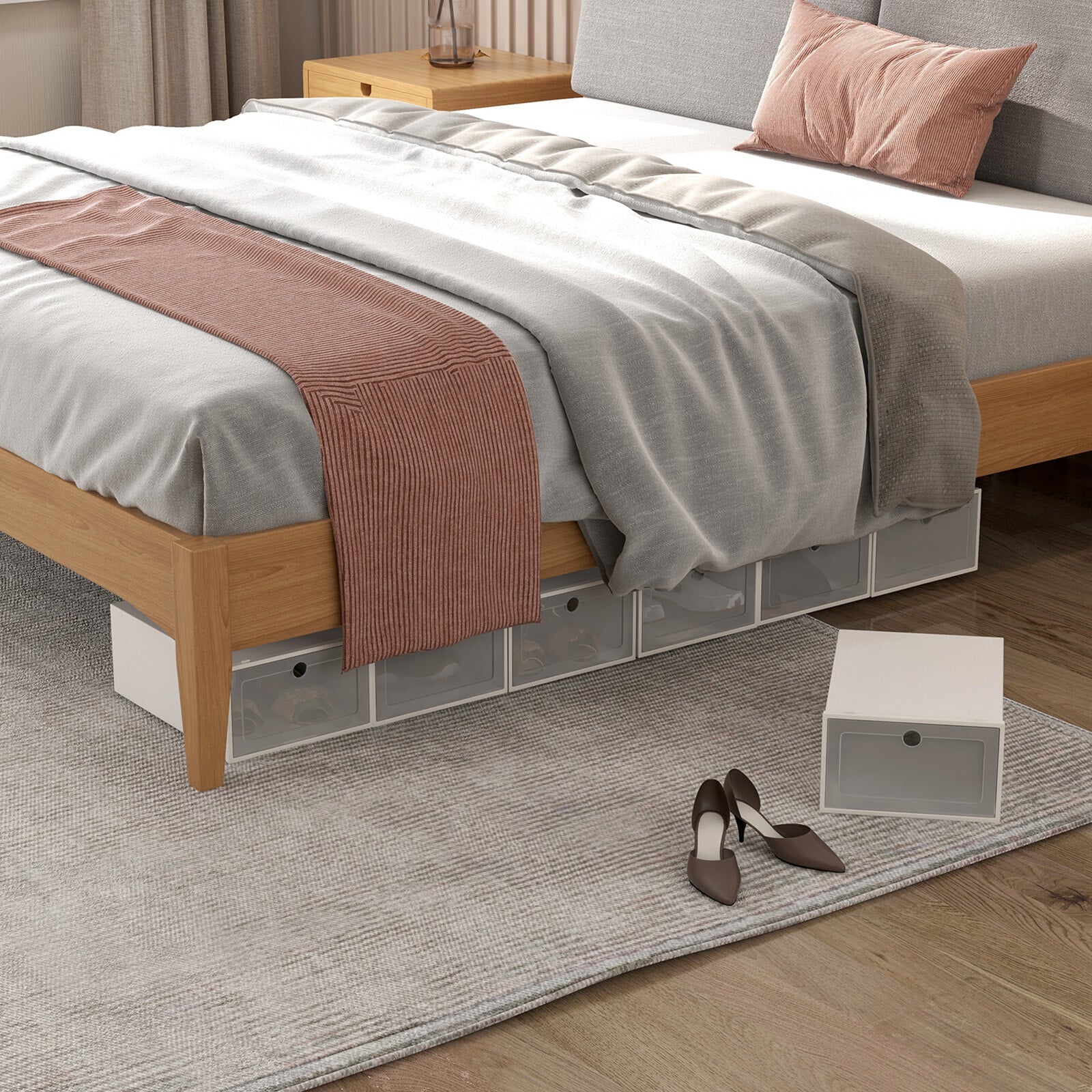 Whether you're organizing a small apartment or creating a sleek walk-in closet, these compact boxes are stackable to maximise storage. Each box fits a variety of shoe types, including sneakers, high heels, and ankle boots, making it a suitable storage solution for every footwear lover.