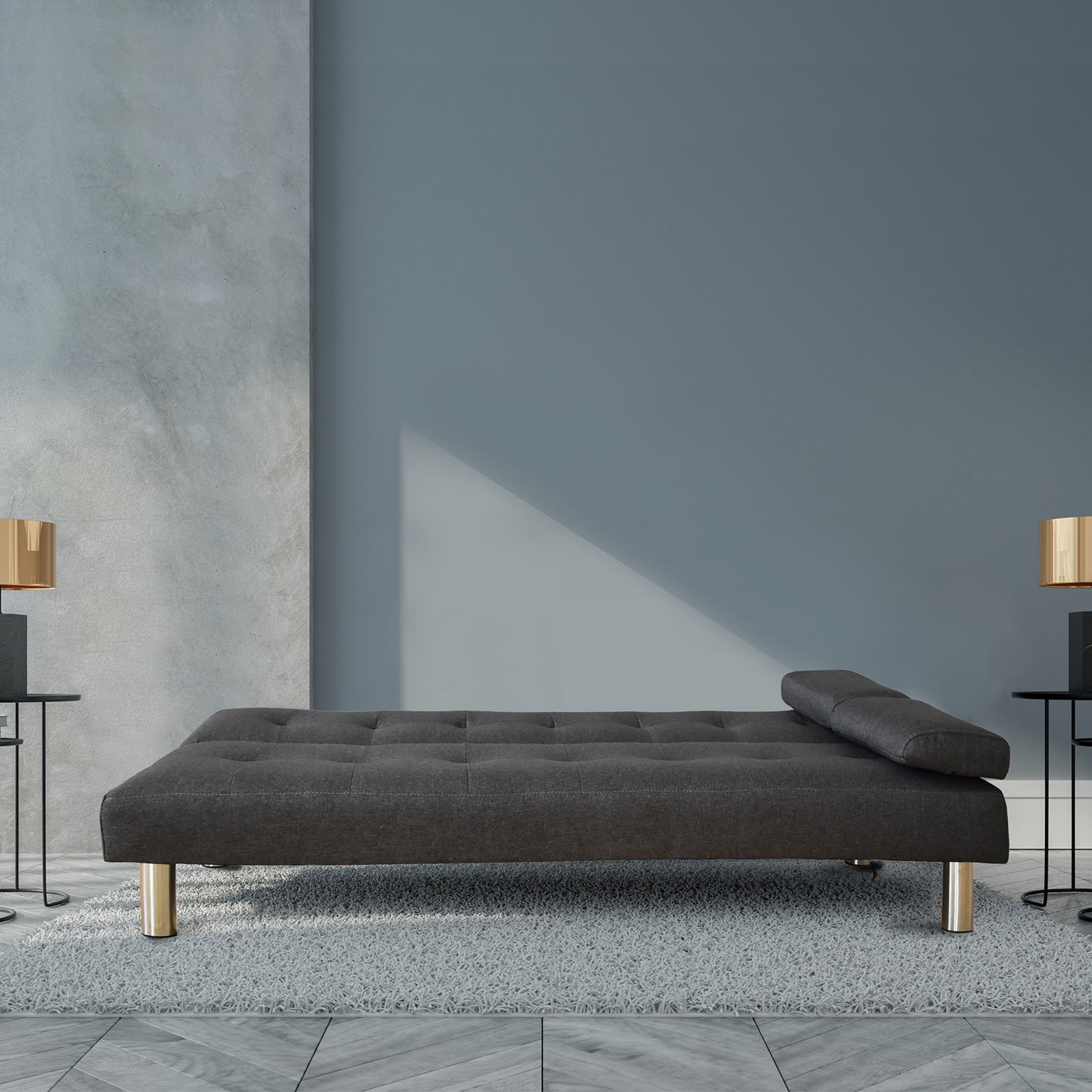 Relax in comfort with the Casa Decor Sofia 2-in-1 Indoor Sofa. This sofa has been designed with both comfort and convenience in mind. The sofa folds down into a day bed and comes with 2 easily removable armrest style-pillows. With a solid wood frame, this sofa is filled with high-density foam that is encased in a tufted faux linen fabric. Entertain during the day and sleep at night with the Casa Decor Sofia 2-in-1 Indoor Sofa. Features: -Brand: Casa Decor -Range: Sofia -1-in-1 Indoor Sofa -Tufted design -Folds down into a bed -2-seater sofa that converts into a day bed -Practical and compact design -Comes with 2 x arm-rest style pillows -Easy to assemble -Powder-coated steel legs -Solid wood frame -High-density foam fill -Available Colours: Grey, Charcoal Specifications: -Sofa Dimensions: 168.5cm x 67cm x 65cm -Flat Dimensions: 168.5cm x 82cm x 31cm -Cover: Faux Linen (220G) -Frame: Fibreboard wood -Fill: PP Foam Cotton (25D) -Legs: Metal (Steel, 6cm) -Capacity: 200kg Package Contents: 1 x Sofa 2 x Pillows 1 x User Manual